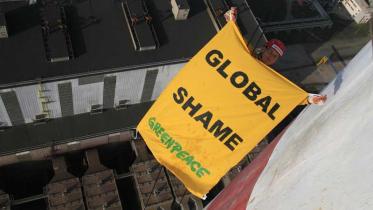 Schauen Sie, wie Greenpeace-Kletterer heute gegen Prunérov 2 protestierten.
