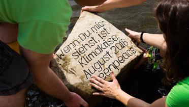 Ein Steinmetz hat den Findling sorgfältig graviert – auf dass er am liebsten auf Nimmerwiedersehen in der Elbe verschwindet. Doch so viel Glück werden wir vermutlich nicht haben. Die voranschreitende Erderhitzung macht langanhaltende Temperaturextreme immer wahrscheinlicher. Dass die Kinder und Enkel der Magdeburger den Greenpeace-Stein nie wieder zu Gesicht bekommen, ist deshalb ein frommer Wunsch – in Erfüllung gehen wird er voraussichtlich nicht. Zehn der 15 wärmsten Jahre Deutschlands seit Beginn der Wetteraufzeichnungen lagen in den vergangenen 18 Jahren.