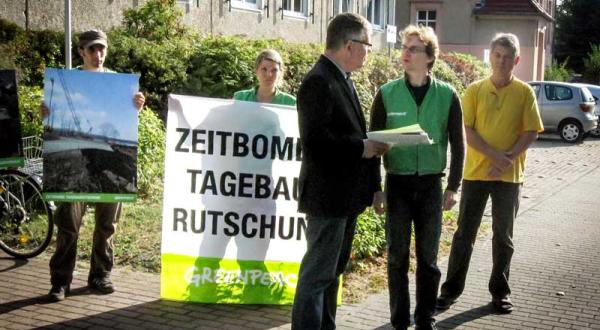 Dies sind die Ergebnisse des von Greenpeace beauftragten Geologen Dr. habil. Ralf E. Krupp. Das Gutachten wird heute von Greenpeace-Aktivisten in Cottbus an die Gemeinsame Landesplanung Berlin-Brandenburg überreicht. Gleichzeitig findet vor der Behörde eine Protestaktion mit Infotafeln statt.