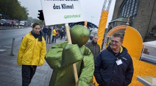 Rund um einen Pavillon vor dem Hamburger Hauptbahnhof hat Vattenfall mehrere tausend kleine Plastikfiguren aufgebaut und sammelt Unterschriften für seine Kampagne. Es gibt in diesem Fall nur eine Unterschrift, die dem Klima nutzt, sagt Karsten Smid, Energieexperte von Greenpeace. Wir fordern alle Hamburger auf, die Kündigung bei Vattenfall zu unterschreiben und zu einem Ökostromanbieter zu wechseln.