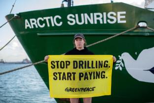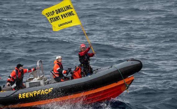 Nach knapp zwei Wochen und einer Seereise von 4.000 Kilometer beendeten Aktivist:innen im Februar ihren Protest auf der Shell-Ölplattfrom in Haugesund, Norwegen. Nun, mehr als ein halbes Jahr später will Shell Greenpeace mit einer 8-Millionen-Euro-Klage einschüchtern.