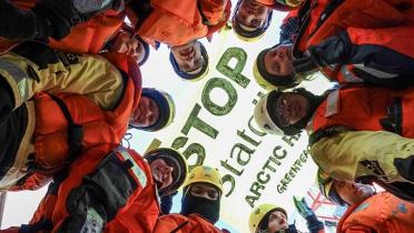 Immer mehr entwickelt sich die Arktis zum Tummelplatz für die Ölindustrie. Konzerne wie Statoil, Gazprom und Shell nutzen den immer stärkeren Rückgang der Meereisdecke in Folge des Klimawandels, um tiefer in die Region vorzudringen. Erst vor drei Wochen protestierten achtzig Greenpeace-Aktivist: innen bei der Ankunft des Gazprom-Tankers Mikhail Ulyanov im Hafen von Rotterdam. Das Schiff lieferte erstmals Öl aus arktischen Offshore-Bohrungen nach Europa.