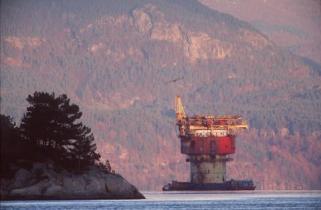 Die Brent Spar geht im norwegischen Erfjord vor Anker. Shell schreibt die Entsorgung der Plattform international aus. Damit beginnt ein langwieriges Auswahlverfahren.