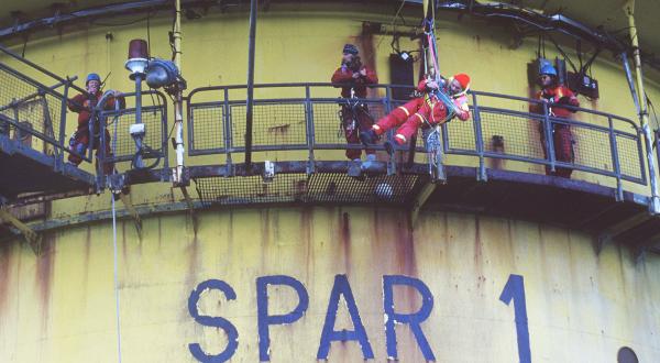 Zum dritten Mal gelingt die Besetzung der Brent Spar. Trotz Windstärke sechs und Beschuss durch Wasserkanonen des Shell-Schiffs REMBAS gelangen zwei Aktivisten auf die Plattform.
