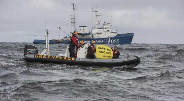 Vier Beamte der Küstenwache hatten die Arctic Sunrise betreten, nachdem einige Aktivisten mit Schlauchbooten und "Save The Arctic"-Bannern in die Nähe der "Geolog Dmitriy Nalivkin" gefahren waren, um gegen seismische Untersuchungen zu protestieren, mit deren Hilfe das Schiff im Auftrag von Rosneft und ExxonMobil das Ölvorkommen unter dem Meeresgrund überprüft. Die dabei ausgesendeten Schallwellen können bei Walen schwere Schäden zur Folge haben und schlimmstenfalls zum Tod führen.