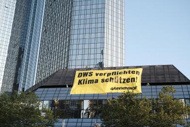 Greenpeace-Kampagne: Deutschlands größter Vermögensverwalter DWS (Deutsche Bank) investiert trotz Bekenntnis zum 1,5-Grad-Ziel in die Klimakrise. Nun muss DWS wegen Greenwashing eine Strafe zahlen.