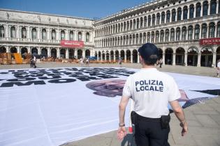 Auch Greenpeace-Aktivist:innen nutzten die umstrittene Feier für eine klare Botschaft. Gemeinsam mit einer britischen Protestgruppe entrollten sie auf dem Markusplatz ein rund 20 mal 20 Meter großes Banner. Die Botschaft: „If you can rent Venice for your wedding, you can pay more tax.“ Zu Deutsch: Wer sich Venedig für seine Hochzeit leisten kann, kann auch angemessene Steuern zahlen.