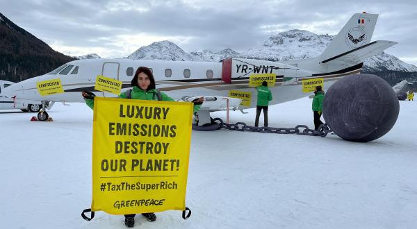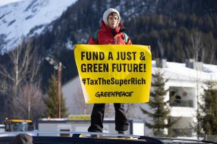 Jeden Januar treffen sich die Superreichen beim Weltwirtschaftsforum in Davos (Schweiz), um über Geld, Wirtschaft und die globale Zukunft zu sprechen. Die reichsten 1 Prozent der Welt kommen hier zusammen. Sie sind für mehr Emissionen als 66 Prozent der gesamten Weltbevölkerung verantwortlich. Die Greenpeace-Aktivist:innen sind mit ihrem friedlichen Protest in Davos, um den Regierungen eine dringende Botschaft zu übermitteln: Die Superreichen müssen fair besteuert werden, um eine grüne und gerechte Zukunft zu finanzieren.