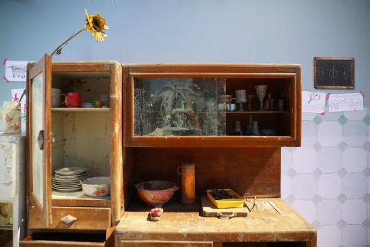 Flutwohnung Berlin, zerstörter Küchenschrank