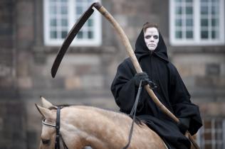 Das falbfarbene Pferd bringt den Tod. Schon jetzt sterben nach Schätzungen des Global Humanitarian Forum jedes Jahr 300.000 Menschen durch den Klimawandel. Es wird erwartet, dass diese Zahl bis 2030 auf eine halbe Million jährlich ansteigt.