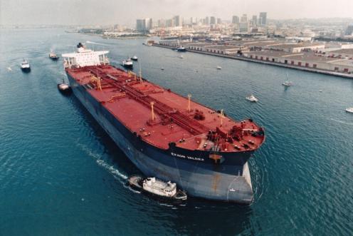 Öltanker Exxon Valdez 1989 nach der schweren Ölhavarie zur Reparatur in San Diego