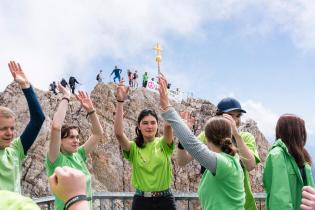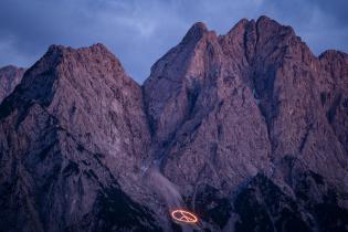 Greenpeace-Aktivisten zündeten ein PEACE-Bergfeuer auf dem Waxenstein anlässlich des G7-Gipfels.