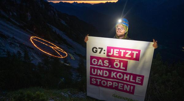 Die Erwartungen an den Gipfel, der am heutigen Dienstag endet, waren aus Sicht von Greenpeace klar. “Die G7-Staaten müssen sich zum schnellstmöglichen Ausstieg aus allen fossilen Energien und zum globalen Umstieg auf Erneuerbare bekennen, um den Klimaschutz entscheidend voranzubringen und eine friedlichere Welt zu ermöglichen”, sagt Lisa Göldner, Greenpeace-Expertin für Klima. Der russische Angriffskrieg in der Ukraine dürfe nicht weiter mit Importen von Kohle, Gas und Öl mitfinanziert werden. “Ein fataler Fehler wäre es aber, die russischen Importe jetzt im gleichen Umfang durch fossile Brennstoffe aus anderen Ländern zu ersetzen.” Das würde unverändert die Klimakrise befeuern und schüfe lediglich weitere potenzielle Krisenherde.