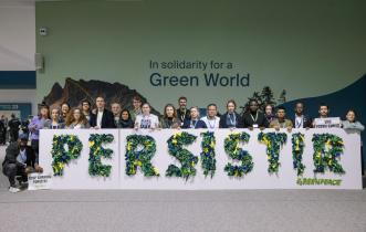 Die Klimakonferenz endet mit Finanzzusagen, die weit zurückbleiben hinter dem Nötigen. Beim Klimaschutz kommt sie gar nicht voran. Hoffnung spendet allein das nächste Gastgeberland Brasilien (Foto: Greenpeace-Aktion für mehr Unterstützung geschädigter Länder)
