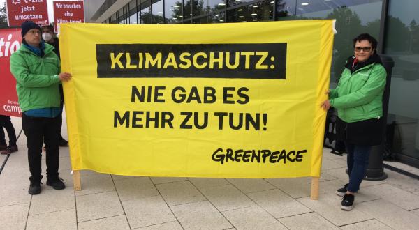 Die Sondierungsgespräche laufen, noch in dieser Woche soll die Vorentscheidung fallen, ob die nächste Bundesregierung von einer Ampelkoalition getragen wird. Heute sind die Verhandlungsführer:innen von SPD, FDP und Grüne zum zweiten Mal zusammengekommen, um auszuloten, wie das Regierungsprogramm für die kommenden vier Jahre aussehen soll. Aktivistinnen und Aktivisten von Greenpeace haben die Parteispitzen am Verhandlungsort auf dem Berliner Messegelände aufgefordert, klare Prioritäten zu setzen und ihre Wahlversprechen umzusetzen: “Klimaschutz: Nie gab es so viel zu tun!” hieß es auf ihrem Banner.