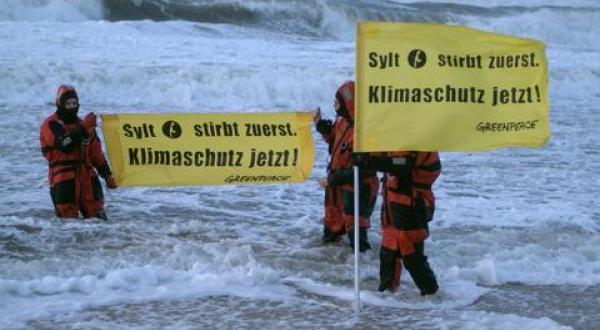 Seit vielen Jahren wird an den Küsten von Sylt immer wieder Sand vorgespült, um dem Meer zu trotzen. Die Greenpeacer wollen deshalb Sand in Flaschen abfüllen und nach Berlin bringen. Er soll Bundeskanzlerin Angela Merkel, Umweltminister Sigmar Gabriel und Wirtschaftsminister Michael Glos an die Bedrohung durch die Klimaerwärmung erinnern.