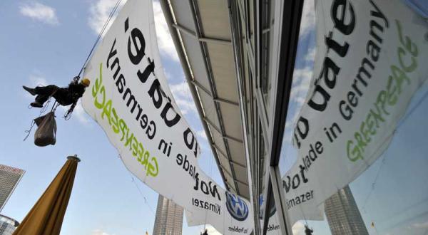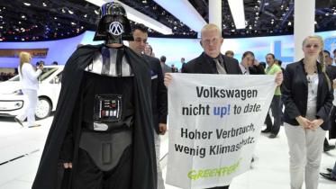 Zum ersten Mal hat sich Greenpeace in diesem Jahr bei der IAA direkt an einen Autohersteller gewendet. Und das hat einen triftigen Grund: Als Europas größter Autobauer trägt VW eine besondere Verantwortung, der er derzeit noch nicht gerecht wird. Etwa 60 Millionen Tonnen CO2 stoßen die innerhalb eines Jahres vom Volkswagen Konzern europaweit verkauften Autos während ihrer Nutzungsdauer aus. Das ist weit mehr als bei anderen Herstellern.
