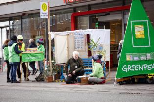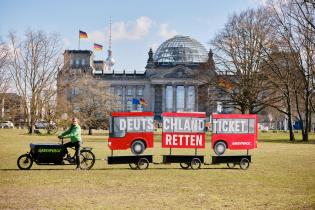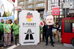 Für ein langfristig gesichertes Deutschlandticket, einen günstigeren Preis des Fahrscheins, ein Sozialticket, kostenlose Fahrten für Kinder und Jugendliche sowie ein besseres ÖPNV-Angebot setzten sich Greenpeace-Aktive seit Monaten ein.