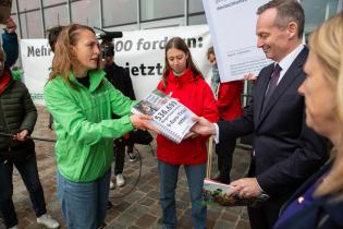 Um noch mehr Menschen zum Umsteigen auf die Bahn zu bewegen, muss deren Nutzung einfach und bequem sein. Ehrenamtliche von Greenpeace haben deshalb bundesweit im März 2025 “Wunschstellen” nach dem Vorbild von Bushaltestellen eingerichtet und bei Passant:innen Anregungen für ein besseres Bus- und Bahnangebot gesammelt – und diese anschließend Politiker:innen überreicht für die Koalitionsverhandlungen. Dass der ÖPNV ausgebaut werden muss, zeigt auch eine von Greenpeace veröffentlichte interaktive Karte: Demnach hat ein Viertel der Deutschen sehr schlechten Zugang zu Bus und Bahn. Ein aktueller Greenpeace-Städtevergleich belegt zudem, dass der Ausbau des ÖPNV auch in den meisten Großstädten stagniert.