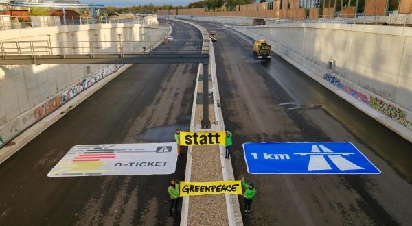 Denn als sich Bund und Länder 2023 über 200 Millionen Euro stritten, die Bundesverkehrsminister Volker Wissing (FDP) für das Deutschlandticket zurückhielt, hat Greenpeace den Streitposten mit den Kosten einiger in Bau befindlicher Autobahnprojekte verglichen – die dem Ausbau und nicht der Sanierung von Straßen dienten: Die 200 Millionen Euro, an denen die Fortführung des Deutschlandtickets monatelang hing, entsprachen den Kosten für 1,2 Kilometer der umstrittenen A100 in Berlin. Auch 900 Meter der geplanten A26 in Hamburg oder 1,3 Kilometer der A52-Bauabschnitte in NRW hätten die Finanzierungslücke decken können.