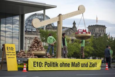 Greenpeace fordert, die Beimischungsquote für Agrotreibstoffe aufzugeben. Vier Wochen vor dem UN-Urwaldgipfel in Bonn muss Klimakanzlerin Angela Merkel ein Zeichen setzen. Um den CO2-Ausstoß zu senken - ohne das Klima und den Nahrungsmittelmarkt zu gefährden - muss der Kraftstoffverbrauch gesenkt werden. Die wirksamste Methode ist hier die Einführung eines Temoplimits von 120 Stundenkilometern auf deutschen Autobahnen.
