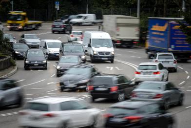 Autos auf der Neckartorstraße in Stuttgart. Das Neckartor ist eine der meistbefahrenen Straßen Deutschlands.