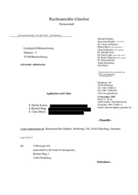 - 9.11.2021 - Clara Mayer, Martin Kaiser and Roland Hipp file their lawsuit against Volkswagen at the Regional Court of Braunschweig. A similar lawsuit is filed by Ulf Allhof-Cramer an organic farmer at the Regional Court of Detmold.