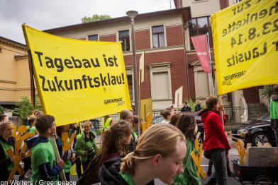 In 37 deutschen Städten protestieren Greenpeace-Aktivisten heute gegen Europas größtes Umweltverbrechen: die Braunkohle-Pläne in Brandenburg und Sachsen.