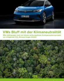Für seine neuen Elektro-Modelle startet VW derzeit eine große PR- und Charmeoffensive: Mit einem frischen Auftritt will der weltweit zweitgrößte Autohersteller klimabewusste Kund:innen einladen, am „Aufbruch in eine neue Ära“ teilzuhaben – vor allem junge Familien. „VW - just electric“ – so der Slogan der ID.-Reihe des Wolfsburger Unternehmens – suggeriert die Marschrichtung eines Konzerns, der sich zu den Zielen des Pariser Klimaschutzabkommens bekennt und seine Produktion klimafreundlich umrüstet.
