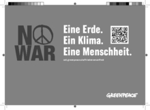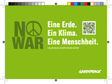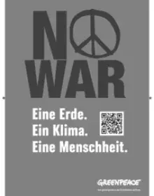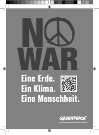 Frieden ist nicht alles, aber ohne Frieden ist alles nichts“, sagte schon Willy Brandt. Gewalt ist keine Lösung, und Krieg kein Mittel der Politik. Frieden ist die Grundlage für ein glückliches Leben ohne Angst für jeden Einzelnen, für eine freie Gesellschaft und für eine demokratische Diskussion um Werte wie Umweltschutz: "Let's make it a Green Peace!"