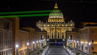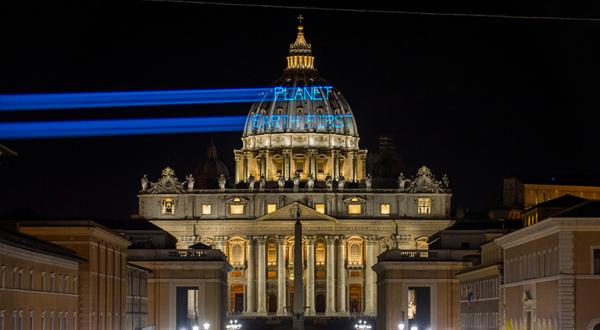 Mit einer Projektion auf den Petersdom haben Greenpeace-Aktivisten den beiden heute Gesprächsstoff geliefert. In den frühen Morgenstunden konnte man den Schriftzug „Planet Earth First“ auf dem römischen Wahrzeichen lesen. Die Parole bezieht sich auf Trumps engstirniges Regierungsmotto „America First“, Amerika zuerst. Die Aktivisten sind überzeugt: Herausforderungen wie der Klimawandel lassen sich nur gemeinsam lösen.