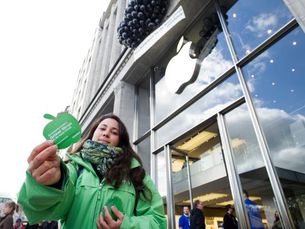 Deshalb spricht eigentlich nichts dagegen, dass auch Apple diesen Weg einschlägt. Seit September 2006 wendet sich Greenpeace darum gezielt an Apple-Liebhaber. Auf den Internetseiten von www.greenmyapple.org werden die Mac-User über die gefährlichen Inhaltsstoffe und fehlende Umweltverträglichkeit aufgeklärt. Zugleich können sie sich an Apple wenden und mit eigenen kreativen Ideen ein Umdenken bei dem Elektronikhersteller fordern.
