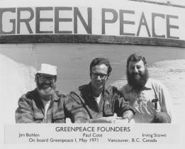 Irwing Stowe, Jim Bohlen und Paul Cote sind ab Ende der 1960er Jahre in der Friedensbewegung aktiv. Über ihr gemeinsames Engagement gegen die US-amerikanischen Atomtests lernen sich die Mitbegründer von Greenpeace kennen. Aus Angst vor einer Flutwelle, ausgelöst durch Atombomben im Meer - gründen sie mit weiteren Frauen und Männern das "Don't Make a Wave Committee" in Vancouver , die Keimzelle von Greenpeace. Direkte gewaltfreie Aktion und Medienarbeit bilden schon damals das Grundgerüst erfolgreicher Kampagnenarbeit.