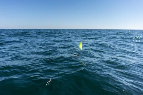 Um die potenziellen Umweltauswirkungen der geplanten Bohrstelle N05a zu untersuchen, fuhren Greenpeace-Rechercheur:innen mit einem Boot in die Nähe der Bohrstelle. Drei Bojen mit GPS-Empfängern, die ihre Position per Satellit ans Investigativteam senden, wurden so in der Nordsee ausgesetzt, dass dabei die Strömungsverhältnisse in unterschiedlichen Gezeiten berücksichtigt werden konnten.