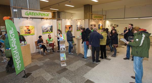 Stuhlkreis im Atrium der Greenpeace-Zentrale