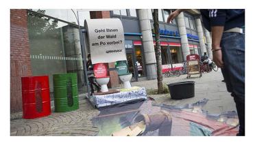 In den letzten Jahren ist der Anteil an Recyclingfasern bei Hygienepapier deutlich zurückgegangen. Greenpeace-Aktivist:innen befragten in Hamburg rund 1.400 Passanten zur Wahl ihres Toilettenpapiers.