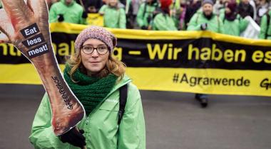 Stephanie und ihr Team wollen transparent machen, was hinter der Fleischindustrie steckt, und eine Ernährungswende anstoßen. Die Basis hierfür bildet das im Januar veröffentlichte „Kursbuch Agrarwende 2050“: Es zeigt auf, wie Deutschland seine Bevölkerung bis 2050 vollständig mittels ökologischer und „ökologisierter“ Landwirtschaft ernähren kann. Zielsetzungen sind eine artgerechte Tierhaltung, die Reduktion klimaschädlicher Treibhausgase (etwa Methan aus der Rinderhaltung und Lachgas aus der Stickstoffdüngung), ein schrittweise komplettes Pestizidverbot, geschlossene Nährstoffkreisläufe und der Schutz der Artenvielfalt. „Die Berechnungen und nötigen Maßnahmen sind natürlich komplex, aber ein Kernsatz lautet: Wir Deutschen müssen unseren Fleischkonsum von jetzt 60 Kilo pro Kopf und Jahr mindestens halbieren, anders lassen sich unsere Umweltziele nicht erreichen“, sagt Stephanie.