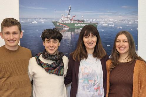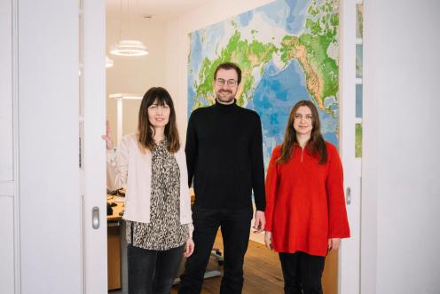 Greenpeace-Team in Berlin: Leiter Georg Kössler (Mitte) mit Mitarbeitenden Kamila Sittek und Elena Keil