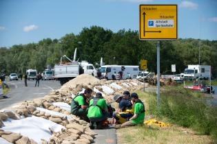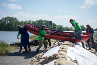 • Greenpeace hilft bei der Elbeflut 2013 mit Sandsäcken und Schlauchbooten