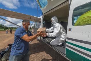 Mit dem Projekt "Wings of Emergency" (Asas da Emergência, auf Portugiesisch) leistet Greenpeace Soforthilfe für die indigene Bevölkerung, um die Auswirkungen des Coronavirus zu verringern. Die Umweltorganisation schickt medizinisches Fachpersonal und Equipment in Gebiete, in denen die Logistik eine ständige Herausforderung für das Gesundheitssystem darstellt. Im Mai 2020 spendete und transportierte Greenpeace Hilfsgüter in die indigenen Gesundheitsdistrikte Tapajós und Jacareacanga (Dsei) im Bundesstaat Pará: 400 chirurgische Masken SH-NK11 und 2.000 Paar chirurgische Handschuhe. Nach einer sorgfältigen Dekontaminierung wurden außerdem 30 Seifenkisten und 5.000 Stoffmasken an das Volk der Munduruku in der Nähe von Jacareacanga gesandt. Die Masken wurden von Greenpeace-Aktivisten und -Mitarbeitern hergestellt.
