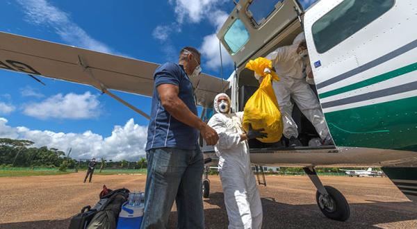 Am 8. Mai landete in São Gabriel da Cachoeira der erste Flug des von Greenpeace und vielen anderen Organisationen getragenen Projekts “Wings of Emergency”, tags darauf der zweite. "Wir stellen unser Flugzeug und unsere Infrastruktur zur Verfügung, damit Ärzt*innen, Pflegepersonal und wichtige Gesundheitsausrüstung jene Gemeinden erreichen können, die dieser Pandemie auch durch fehlende Logistik schutzlos ausgeliefert sind“, so Marçal. So unterstützen nun neun der Passagiere, allesamt medizinische Fachkräfte, das örtliche Zentrum für Indigene Gesundheit, das DSEI des Alto Rio Negro. Im Gepäck unter anderem Tests und Schutzkleidung. Eine Woche später konnten durch die Zusammenarbeit mit dem Sozial- und Umweltinstitut (ISA) auch Nähmaschinen und Stoffe für die Herstellung von Masken geliefert werden.