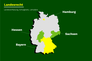 Das Gutachten vergleicht wegen der vielen verschiedenen föderalen Vorgaben nur vier Bundesländer: Aufgrund der Größe und Lage entschieden sich die Autor:innen für Bayern, Hamburg, Hessen und Sachsen. Hamburg und Sachsen haben BNE in ihren Vorschriften vollumfänglich umgesetzt, Bayern weitestgehend, Hessen hingegen unzureichend.