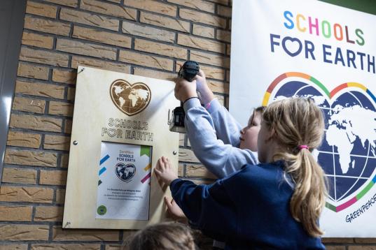 Greenpeace engagiert sich seit vielen Jahren in der schulischen und außerschulischen Bildungsarbeit. Gemeinsam mit anerkannten Partner:innen aus Wissenschaft und Schulentwicklung haben wir das bundesweite Schulprojekt „Schools for Earth” auf den Weg gebracht. Das Ziel: Schulen machen sich auf Richtung Klimaneutralität und Nachhaltigkeit. Sie verankern Bildung für nachhaltige Entwicklung im Schulalltag und schützen damit das Klima, die Umwelt und das friedliche Miteinander auf der Erde. Gleichzeitig setzten Schulen die Empfehlung der Länder und des Bundes, sowie des „Nationalen Aktionsplans Bildung für nachhaltige Entwicklung” um.